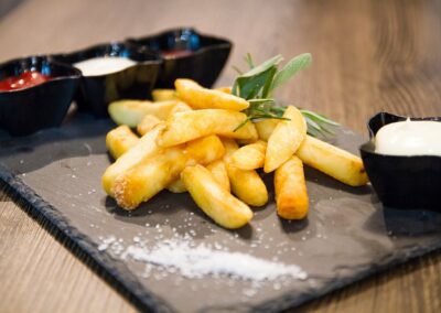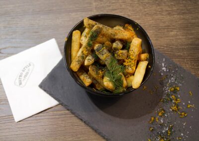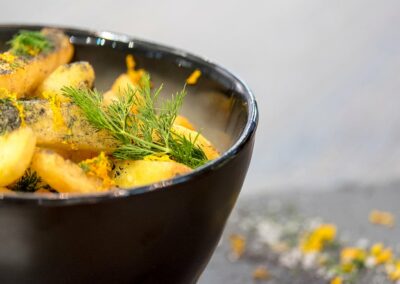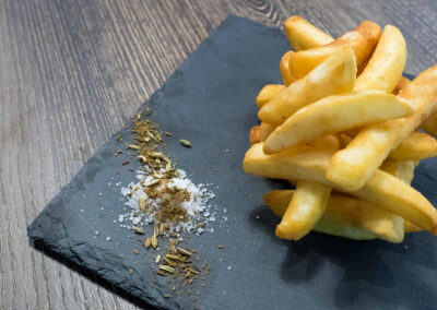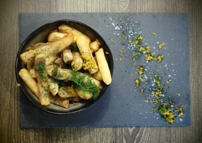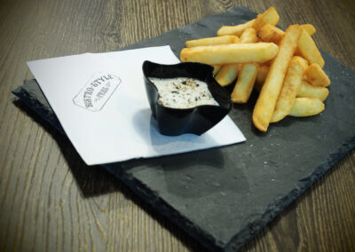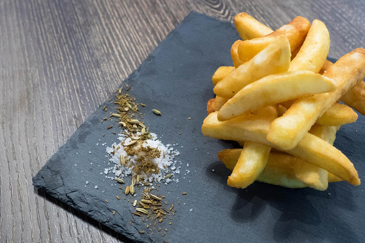 I directed the TuttoFood fair photography. The people that waved life into the stand tasting lots of potatoes were shot in street photography style. Fries and chips were presented and photographed in gourmet-like style. The dark stone slab where each composition was layed down, has been chosen to provide the same coarse falvour used in the Metro Cash&Carry adv campaign.