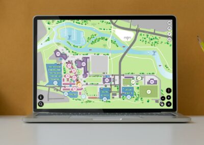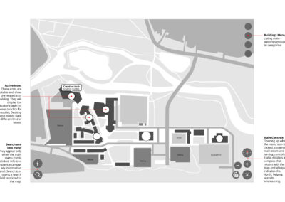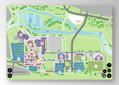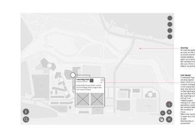 This involved refining icons, labels, and interactive elements to make them as clear as possible. At the same time, I maintained a strong focus on consistency, aligning the map’s design closely with the broader visual identity of the public website. This consistency was crucial in creating a seamless user experience, where visitors could navigate between the website and the campus map without any jarring changes in style or usability. By harmonizing these elements, I aimed to build a cohesive digital environment that felt both professional and user-friendly, enhancing the overall experience for anyone using the map.