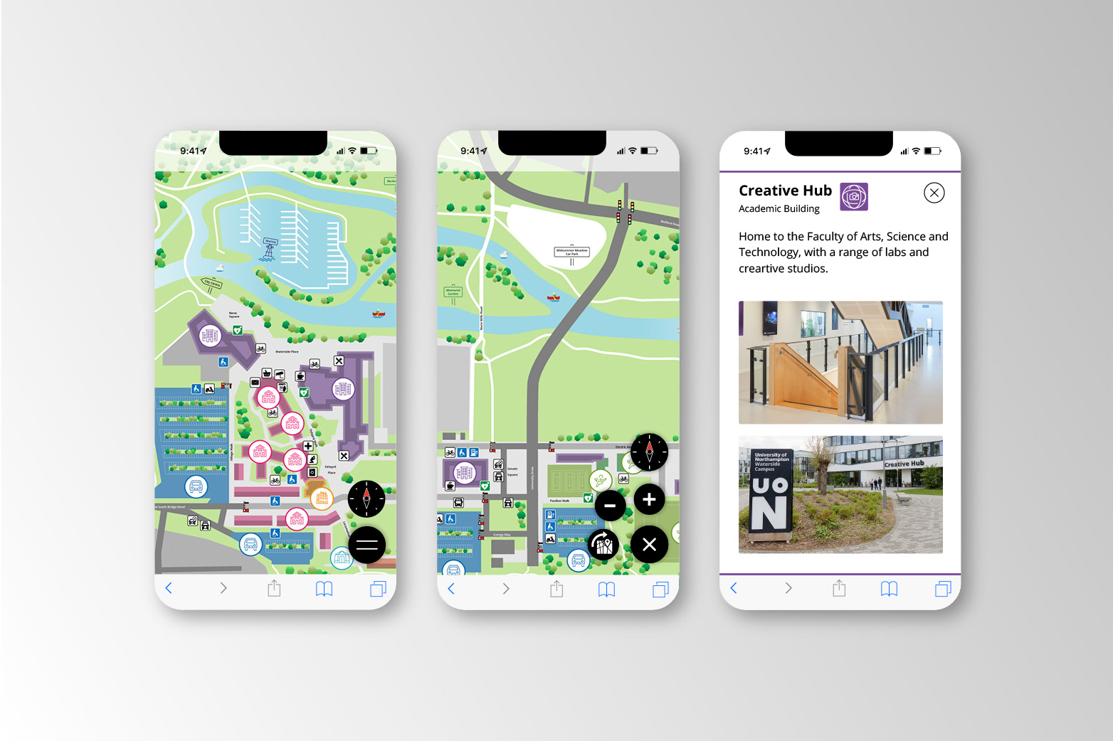 The final product features a sleek, flat design that incorporates UON’s brand colours, with UI elements that align perfectly with the university’s public website. Despite choesion and the engaging experience the map provides, there is still plenty of space for further improvement and implementation of new features such as a path finder functionality.